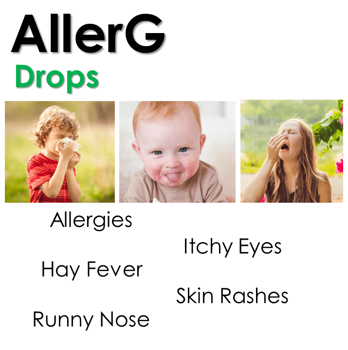 Allergies is an exaggerated reaction of the immune system in response to bodily contact with certain foods (seafood, garlic ect), drugs, sulphites, pollen, dust, cosmetics, animal hair, chemicals in soap | shampoo, insect venom, dust mites and many more. AllerG Drops should be part of any first aid kit, especially when you are traveling. Drops contains herbs with powerful antihistamine and immune boosting properties