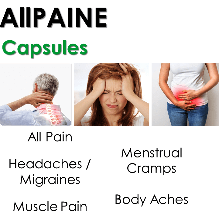 AllPAINE Capsules contains Ginger, Turmeric and other important herbs that provide relief to those suffering from a u number of painful conditions.